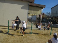 今日は、竹のものさしを使って長さを測る練習をしていました。