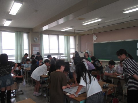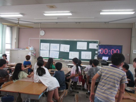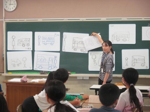 どんな絵だったかを、教室で待っているグループのメンバーに伝えます。