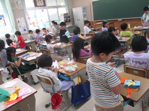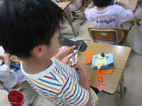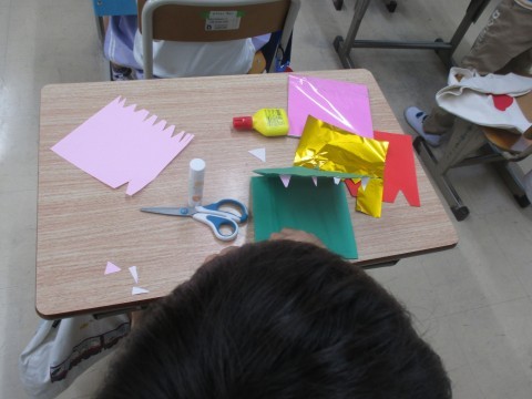 1年生が、図工で「あそぼうよ!パクパクさん」の続きをしていました。