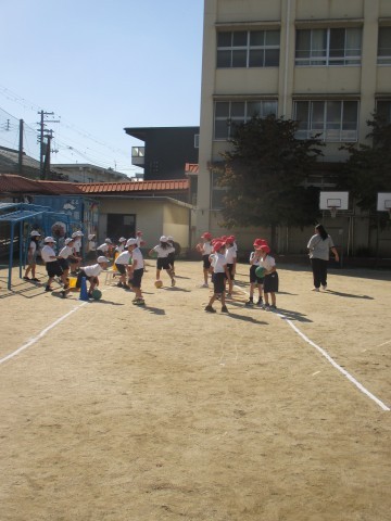 ボールの投げ方や、キャッチの仕方を練習していました。