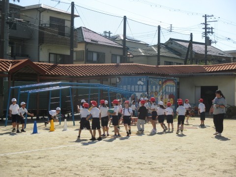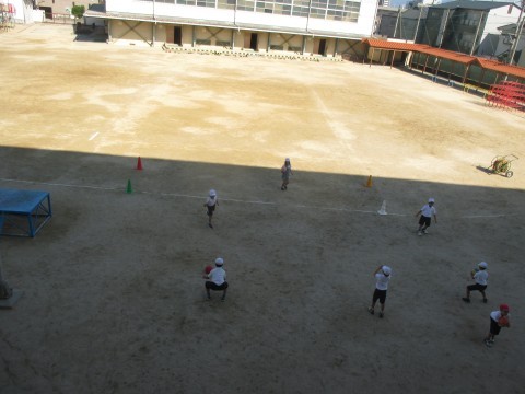 2年生は体育で、サークルシュートゲームに取り組みます。