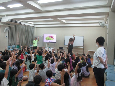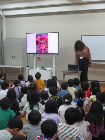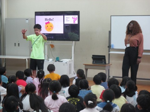 1年生が国際理解教育で、NS(ネイティブ・スピーカー)の先生と一緒に