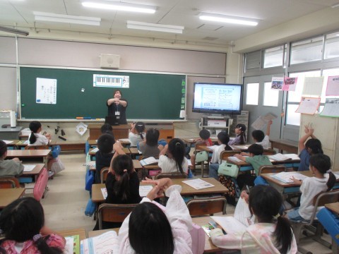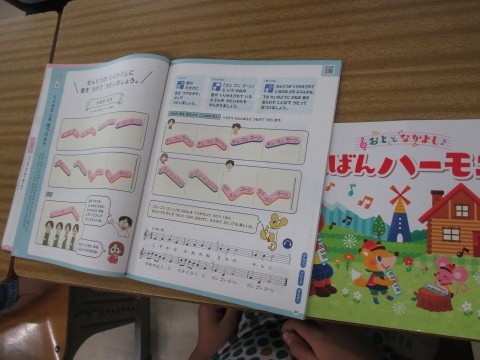 2年生が音楽で「かねが なる」というフランス民謡を学習していました。
