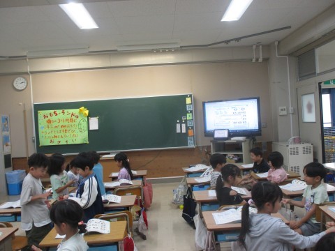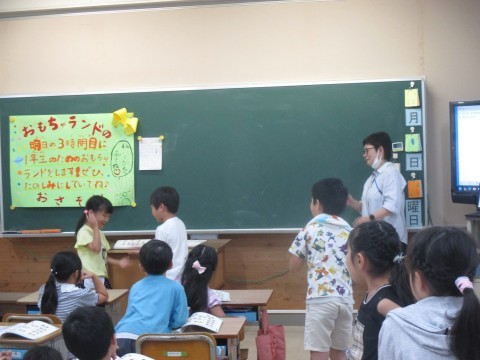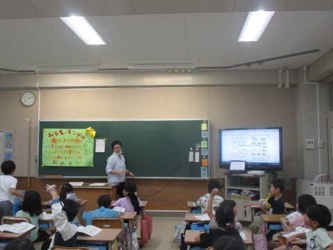 1年生が音楽の時間に,わらべうたをきいたり歌ったりして遊んでいました。