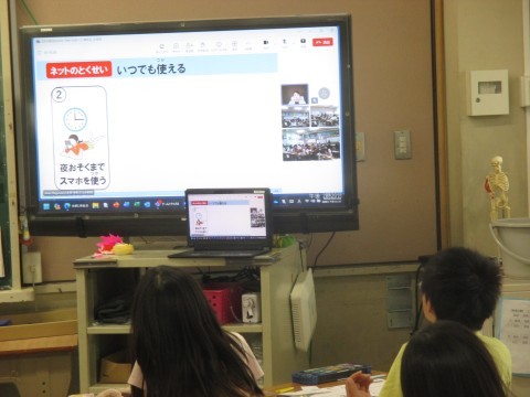 4年生が,オンラインで「スマホ・ネット安全教室」の
