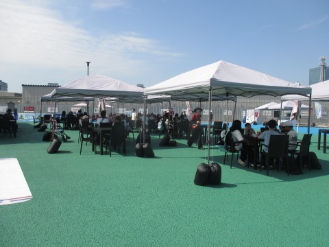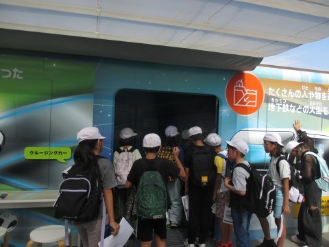 子どもたちは自動運転バスに乗ったり,ミライ体験エリアで