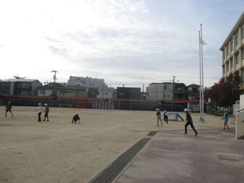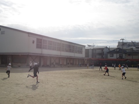 運動場で元気いっぱい遊んだ子どもたちは