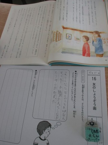5年生が道徳で,「友のしょうぞう画」というお話をもとに