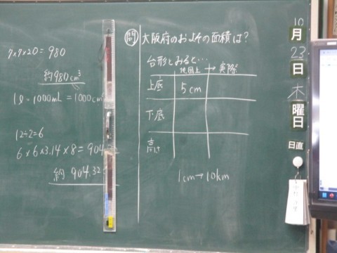ものの外形をとらえて,これまで学習してきた基本図形とみなすことで測定することができます。