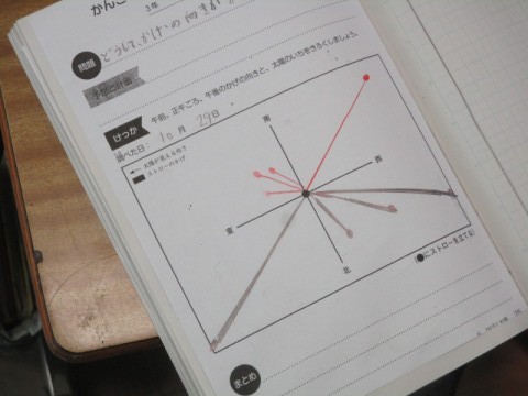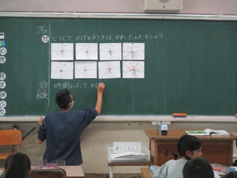 観察した結果をもとに,時間とともに影の向きが変わっていくことについて考察しています。