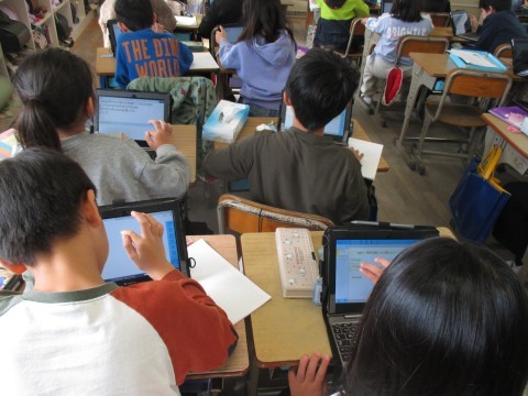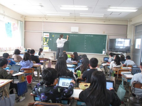 自分のタブレットを使って調べたことを,たくさん発表していました。