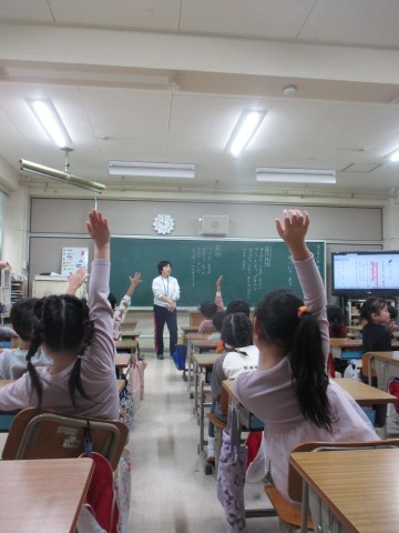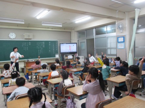 1年生が国語で「しらせたいな,見せたいな」の学習をしていました。