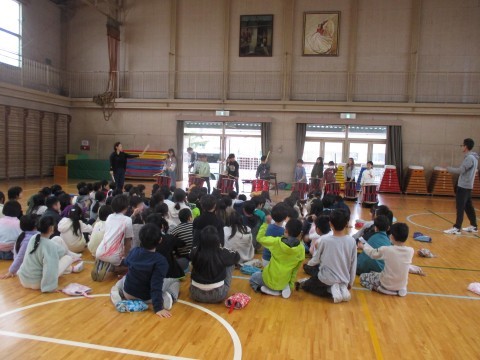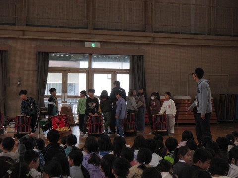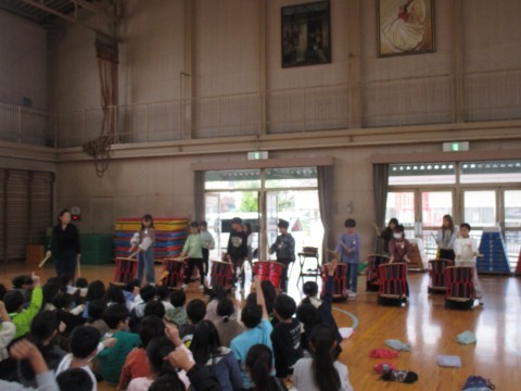 また,全員がバチを持ち,和太鼓を叩く体験をさせていただきました。