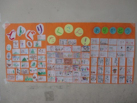 宿泊学習でどんぐりをたくさん拾ってもらった1年生からのお礼のメッセージ。