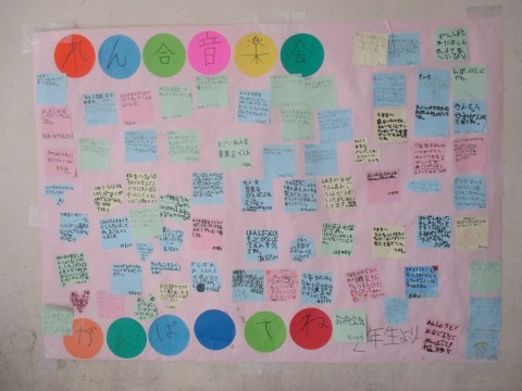 5年生のフロアに行くと,他学年からのメッセージが掲示してありました。