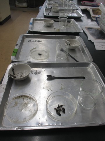 今日は,火山灰を水で洗ってつぶの様子を観察し,