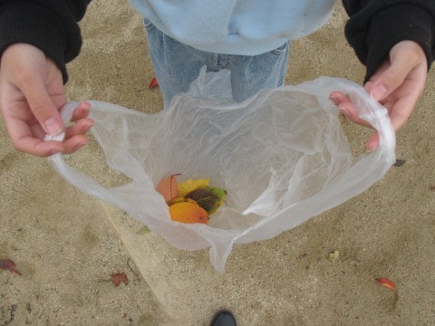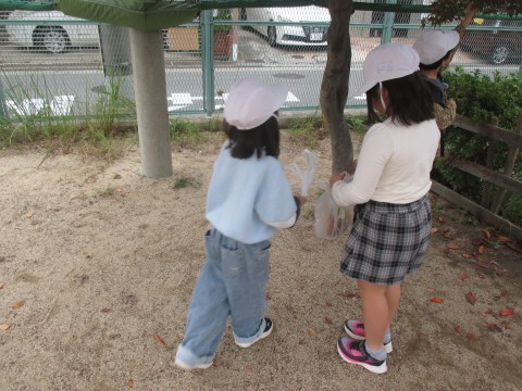 2年生が,図工の葉っぱスタンプで使う落ち葉を集めていました。