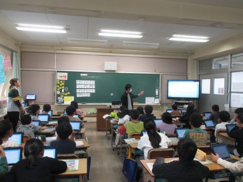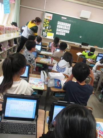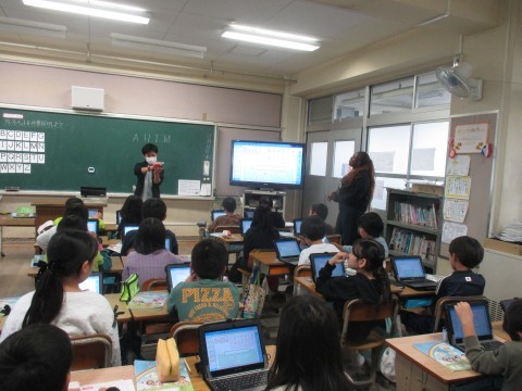 3年生が外国語活動でアルファベットの大文字の学習をしていました。