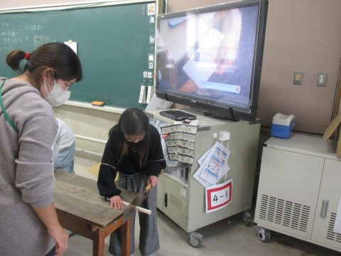 のこぎりで木を切ったり,金づちでくぎを打ったりして