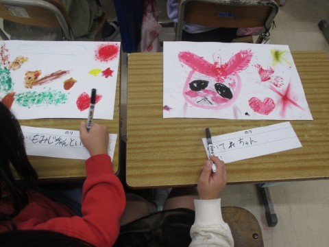 今日は作品に名前をつけて,カードに書いていました。