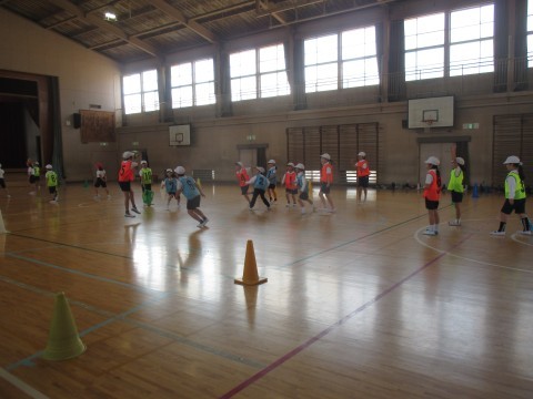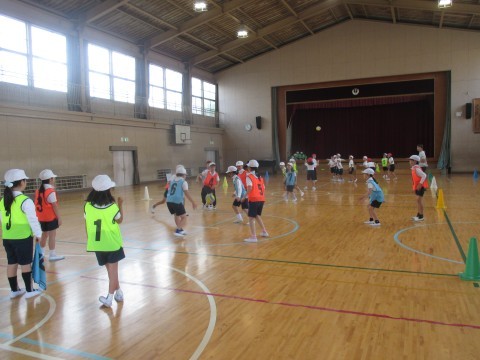 3年生が体育で「ドッチもハンドボール」をしていました。