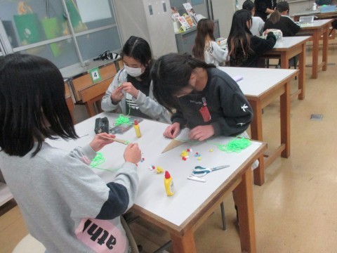 ハンドメイドクラブは,毛糸やスパンコールを使った
