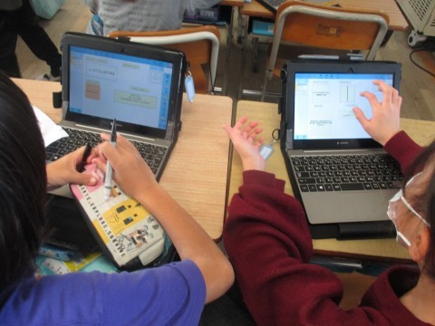 今日は,タブレットなどを使って