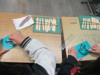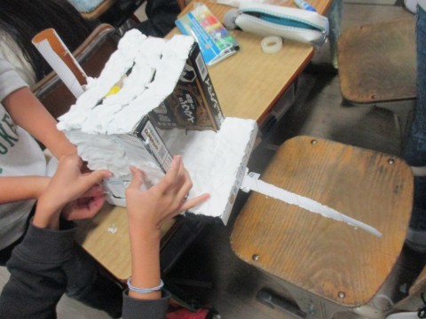 ろう下を歩いていると,「だんじり作ってるから見て!」と