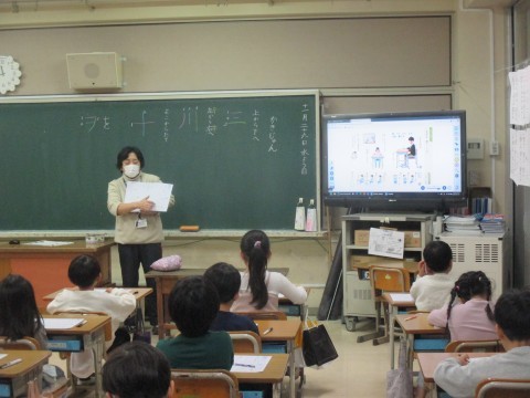 1年生は書写の時間に,えんぴつとフェルトペンを使って