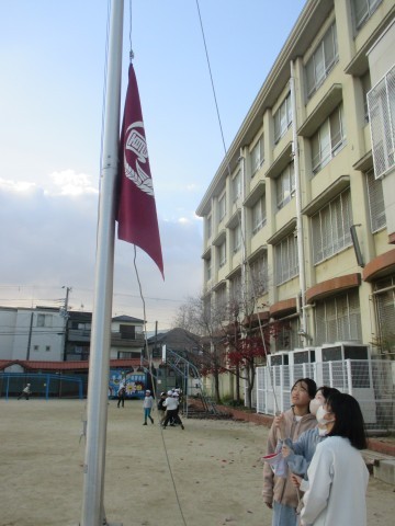 運動場では今日も,児童会役員が校旗を掲揚してくれていました。
