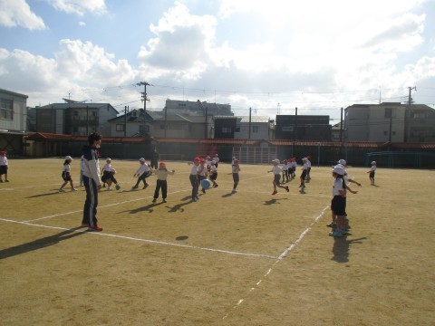 1年生がボール運動をしていました。
