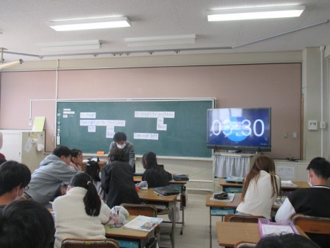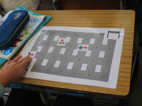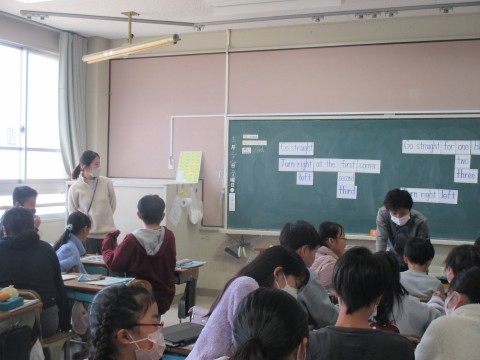 6年生が外国語の時間に,英語で目的地までの行き方を聞いて,