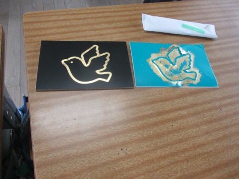 3年 金箔押し体験 出前授業