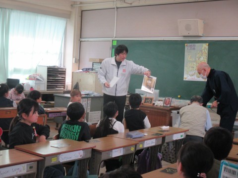 3年生の金箔押し体験の出前授業も