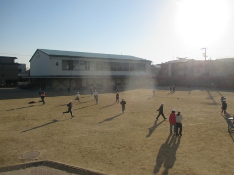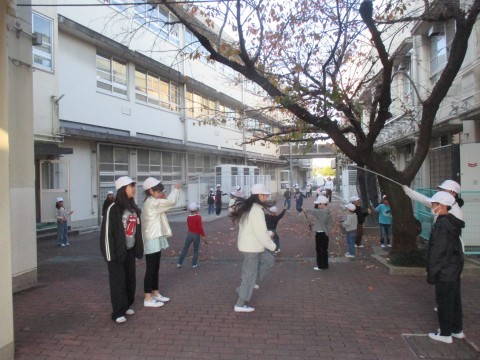 中庭では子どもたちが元気になわとびや