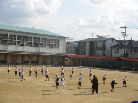 2年生が体育の時間になわとびをしていました。