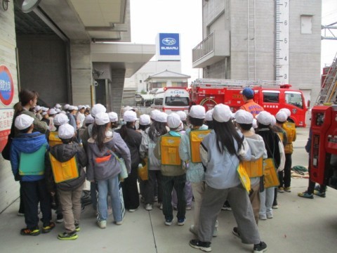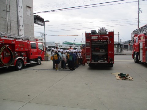 3年の消防署見学,歩いて堺市消防局 西消防署に行きました。