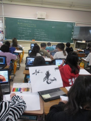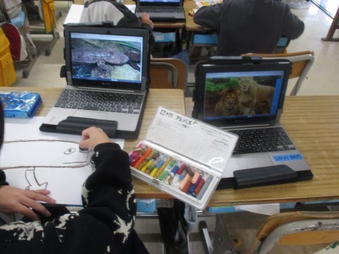 タブレットでその動物の画像を見てイメージをふくらませたりしながら