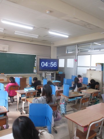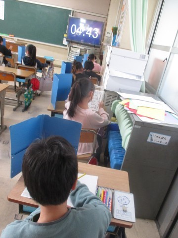テストが終わった児童は,読書をしたり絵を描いたりして