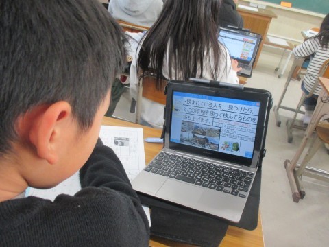4年生が総合的な学習の時間に取り組んでいる防災の学習も