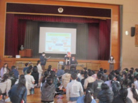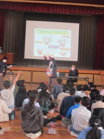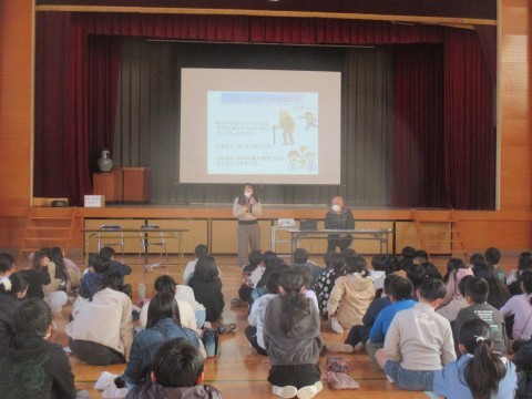 体育館で「認知症キッズサポーター養成講座」を受けました。