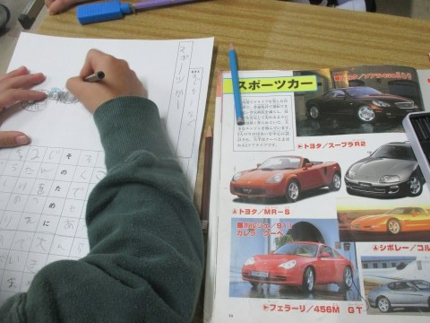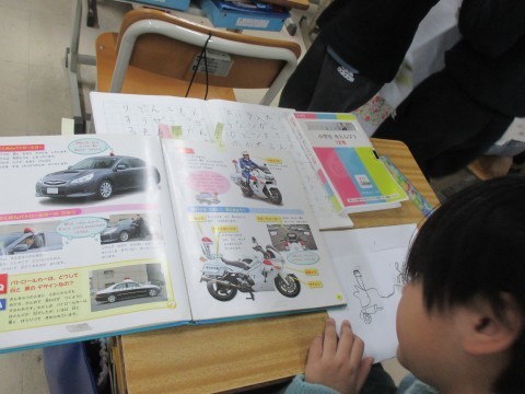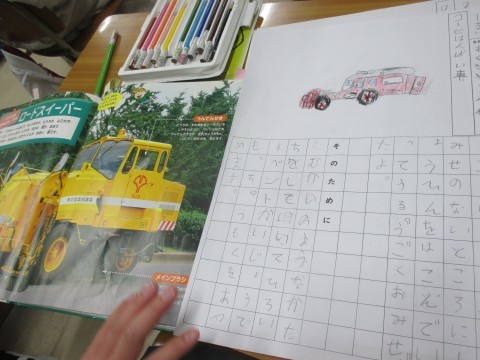 国語で,説明文「じどう車くらべ」の学習をした1年生。