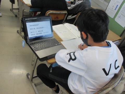 ノートに自分の考えを書いていました。