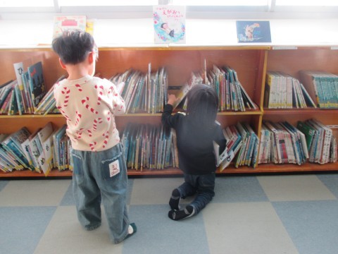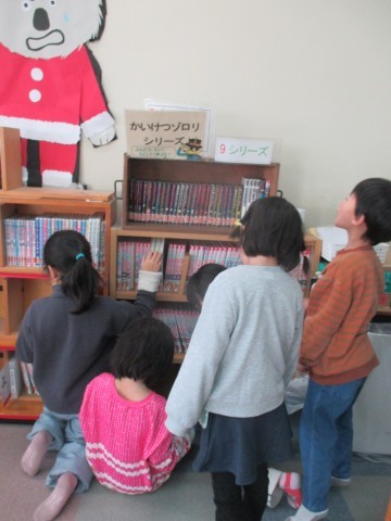 1年生が図書の時間に好きな本を選んでいました。