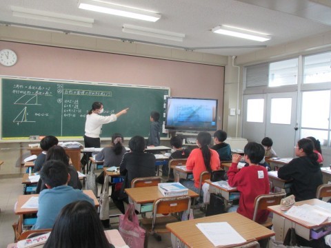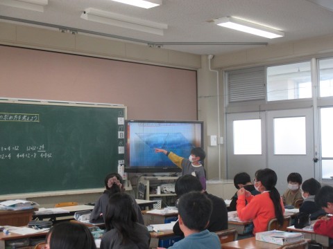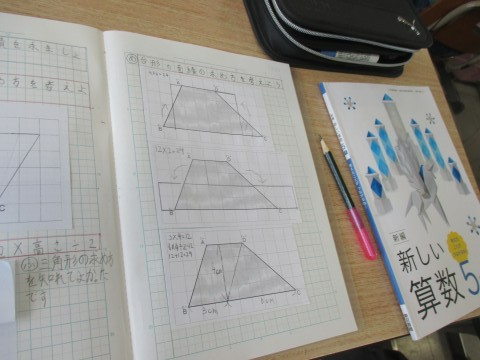 5年生が台形の面積の求め方について学習していました。