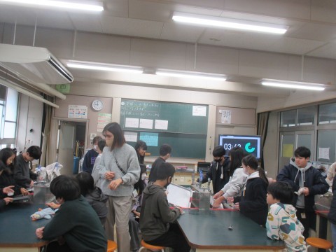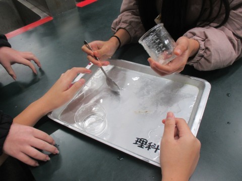 6年生が理科室で「家でもできるミニ実験」をしていました。