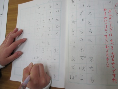 1年生が2学期をふり返って作文を書いたり,