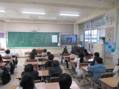 3学期の始業式をテレビ放送で行いました。