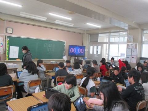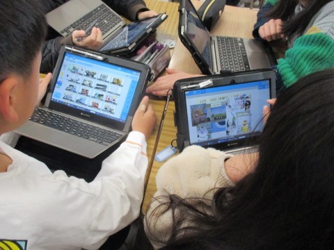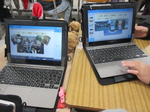 4年生が,冬休みの思い出をタブレットにまとめ