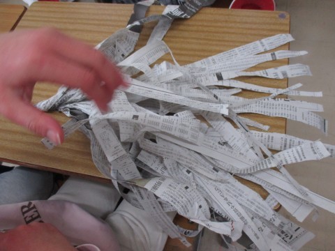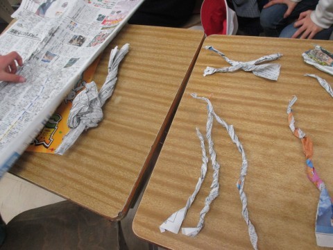 新聞紙の特徴を生かしながら,思いついた好きなものを作っていました。